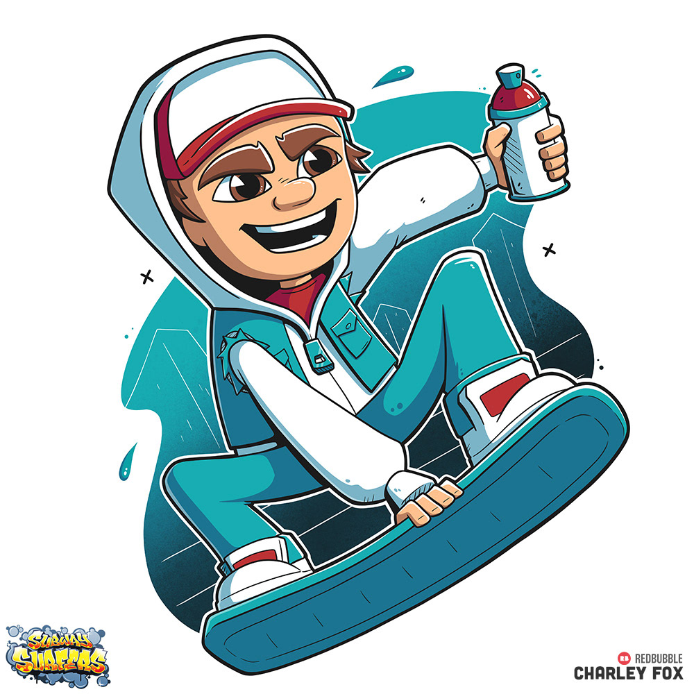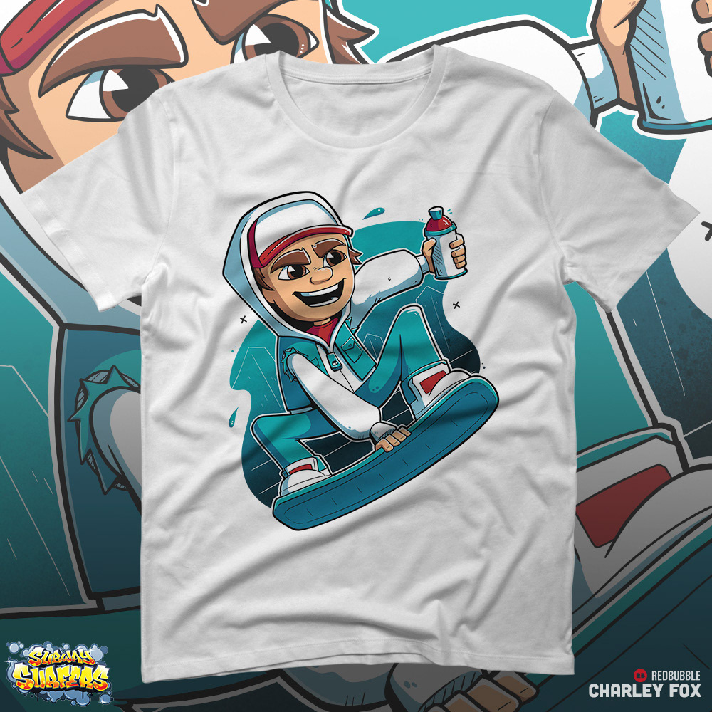 Tag the streets with Jake in this Subway Surfers merchandise designed by Charley Fox. Designed for SYBO Games' merchandise store.